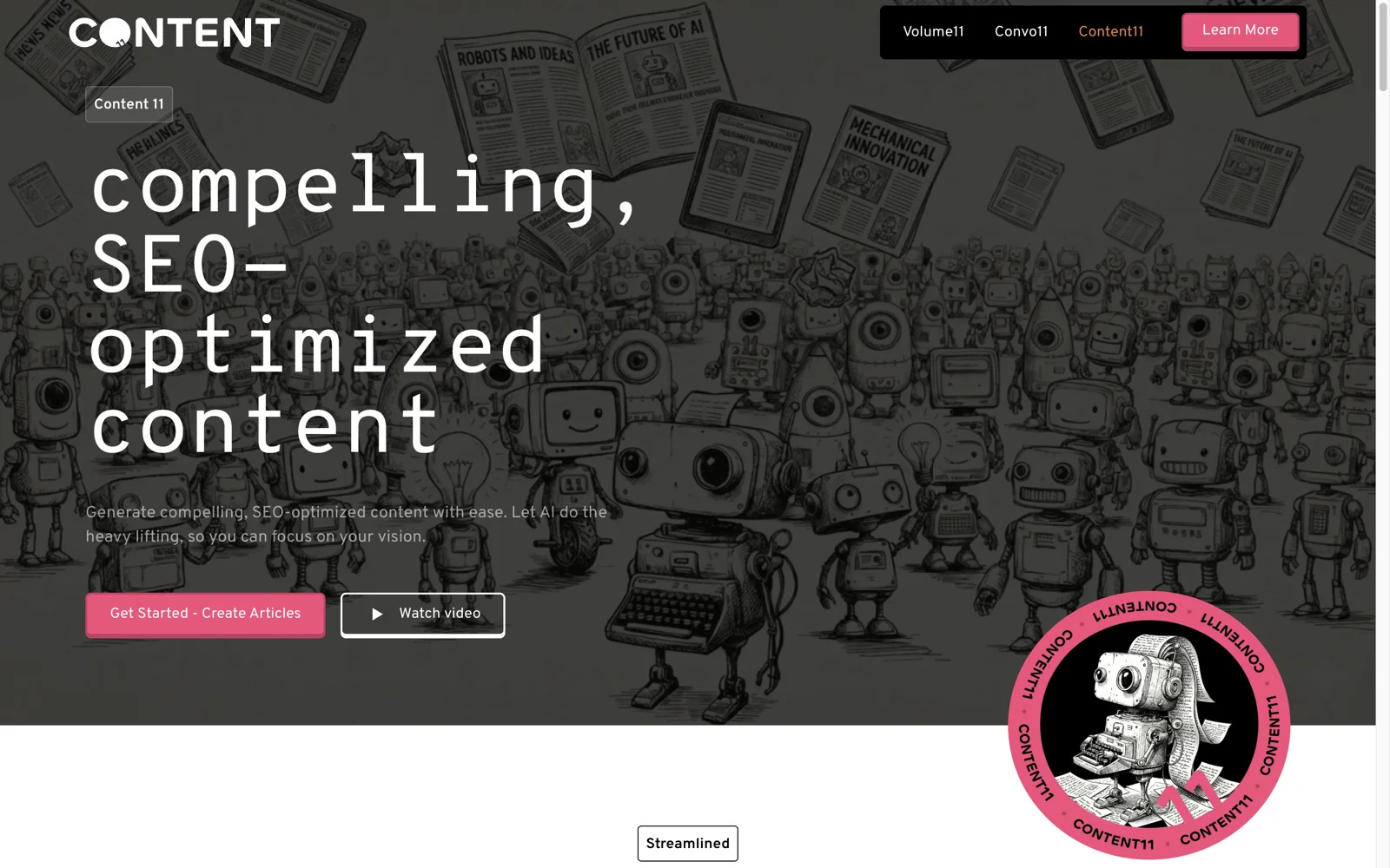 Content 11 is an AI-powered content creation platform that transforms your content workflow. It generates SEO-optimized articles complete with relevant imagery, taking briefs, topics, or RSS feeds and turning them into polished, ready-to-publish content. With direct CMS integration for Webflow and WordPress (plus a flexible API), one-click publishing, and automated social media sharing, Content 11 eliminates publishing bottlenecks and keeps content calendars on track.
